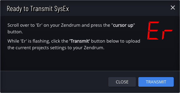 Alternatively you can export your SysEx data to disk and then later manually send it to your Zendrum with a third-party SysEx program. This option gives you more control over the transmission process by letting you mess with the baud rate and envelope sizes. This is definitely for more advanced users and is beyond the scope of this document. The transmission support baked into Zendrum Studio is designed to work in 99.9% of use cases and should not require a third-party app.
