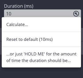 The 'wrench' button within the duration control contains a dropdown menu with a few options related to setting duration.